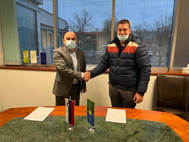 Župan, mag. Marjan Hribar in direktor podjetja Pogrebne storitve Blatnik, Rok Blatnik sta koncesijsko pogodbo podpisala v sredo, 22. decembra 2021.